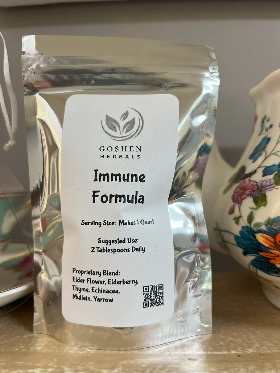 When you’re feeling the effects of the season, it’s time to steep a cup of Goshen Herbals Immune Formula Tea. This Immune Tea is yummy hot or steeped in boiling water, cooled, and served over ice.